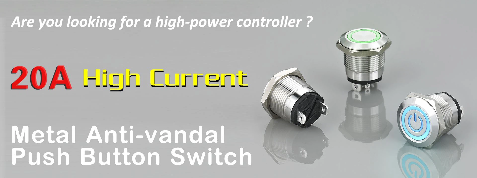 Металлический антивандальный кнопочный переключатель, 20 А, сильный ток